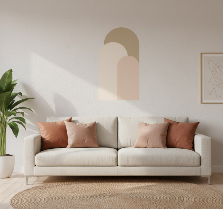 Reference: A53839Transform your living space with our stunning Desert abstract arches wall sticker. This unique design showcases a beautiful blend of soft earthy tones and abstract arches, creating a captivating visual that evokes the serene beauty of a desert landscape. Perfect for adding a touch of elegance and warmth to any room, this wall sticker is crafted from high-quality materials that ensure durability and vibrancy. The satin finish enhances the color intensity while minimizing glare, making it a perfect choice for any lighting condition.
