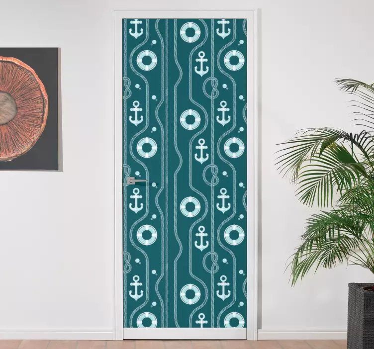 Transform your space with our Door sticker anchor motif design! Featuring a stunning nautical theme, this adhesive showcases an intricate anchor pattern surrounded by waves, evoking the beauty of the ocean. Its artistic illustration is perfect for adding a decorative touch to any door, inviting a sense of marine adventure into your home!