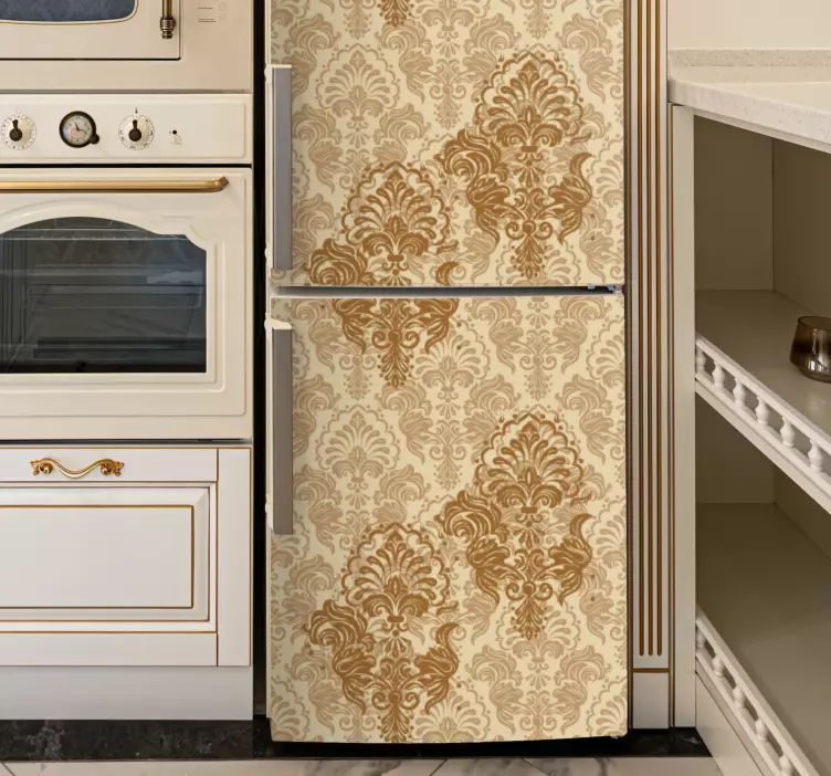 Introducing our Fridge sticker elegant vintage design, a stunning piece that combines ornate floral motifs with a classic golden touch. This beautifully ornamented design is perfect for those who appreciate the charm of vintage aesthetics. The intricate ornamental details and delicate ornaments create a visual feast that transforms your fridge into a work of art, offering a unique blend of elegance and style that enhances any kitchen setting.