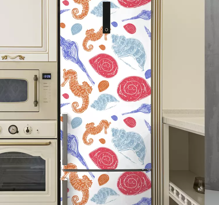 Transform your kitchen into a vibrant underwater paradise with our Fridge sticker seahorse and shells. This playful design features a stunning combination of colorful seahorses and seashells, evoking the beauty of marine life. The lively patterns bring a touch of the sea to your appliance, making it a delightful focal point in your home. Elevate your decor with this unique fridge sticker packed with aquatic charm!