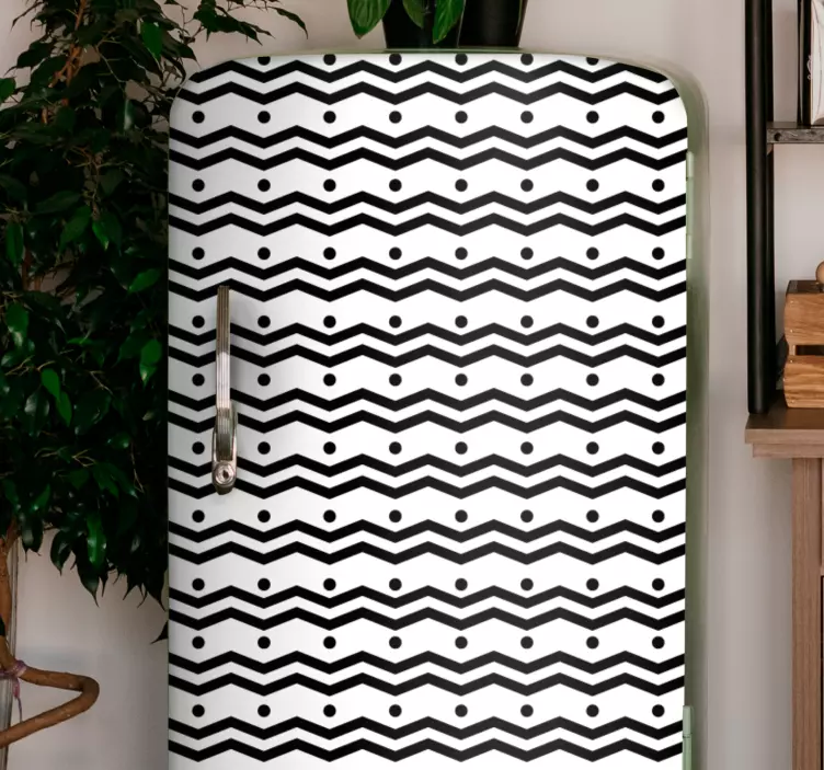 Introducing our stunning Fridge sticker zigzag pattern overlay that features a captivating black and white design. This geometric masterpiece showcases a dynamic zigzag pattern with sleek lines, creating a modern and monochrome aesthetic that elevates your home decor. It's the perfect way to add a touch of style and sophistication to your fridge!
