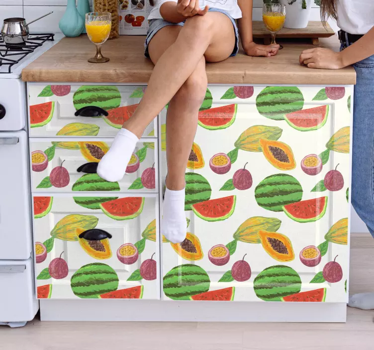Introducing our vibrant Fruit sticker fruit design creation, a delightful fusion of tropical flair and artistic ingenuity! This stunning design features watermelons, papayas, and lemons in a colorful pattern that adds a refreshing touch to any space. Perfect for furniture or walls, this design transforms ordinary areas into lively environments bursting with fruity charm!