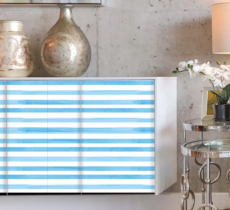 Transform your space with our Furniture sticker blue striped pattern, a stunning design that showcases a modern aesthetic. This eye-catching sticker features bold blue stripes and textured paint strokes, adding a refreshing touch to your furniture and interior decor. The combination of stripes and a vibrant color scheme creates a visually appealing pattern that instantly elevates your home’s ambiance.