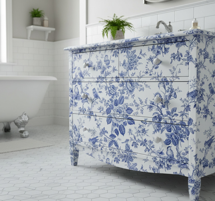 Reference: A54885Introducing our stunning Furniture sticker blue toile floral songbirds, a beautiful addition to any home decor! This design features intricate blue toile patterns with delicate floral accents and charming songbirds, creating a serene and inviting atmosphere. Perfect for those looking to enhance their living spaces with elegance and whimsy, this sticker effortlessly combines artistic flair with practical functionality.