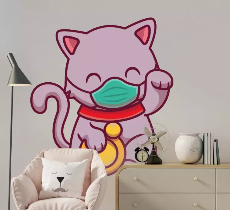 Introducing our charming Happy cat wearing mask wall sticker, a delightful design that features an adorable cartoon cat wearing a playful face mask! This cute animal wall decal adds a fun and whimsical touch to any space, perfect for brightening up your home or office.