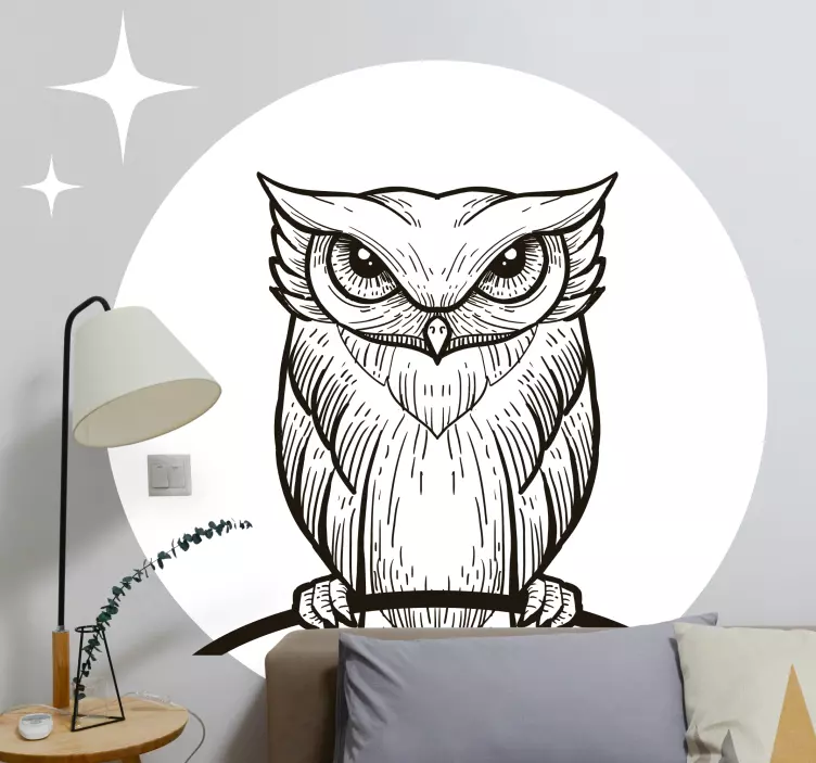Transform your space with our Headboard wall sticker intricate wise owl, featuring a stunning design that captures the essence of nature through a beautiful circular illustration. This detailed black and white owl surrounded by stars brings a touch of whimsy and serenity to any room, making it a perfect addition to your home decor!