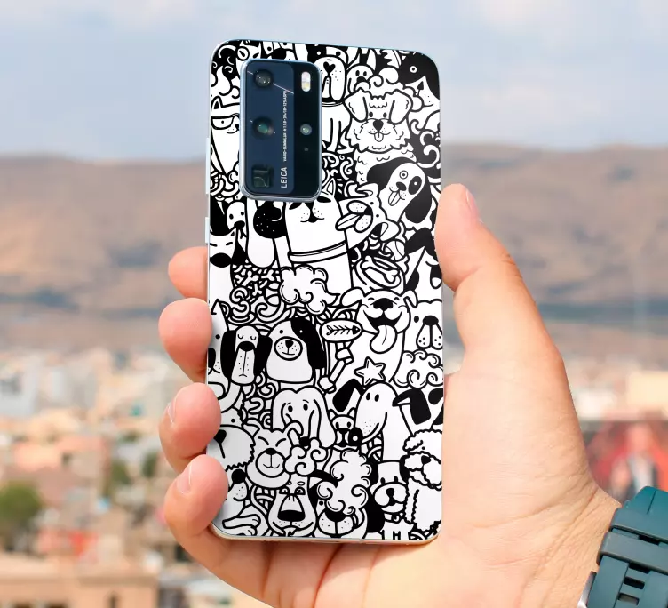 Introducing our vibrant Huawei sticker playful dog designs that bring a delightful touch to any space! Featuring an array of funny characters of dogs and puppies, this black and white pattern is perfect for dog lovers who want to add a playful flair to their phone or other flat surfaces. The charming designs capture the essence of canine joy, making them a wonderful addition to your décor!