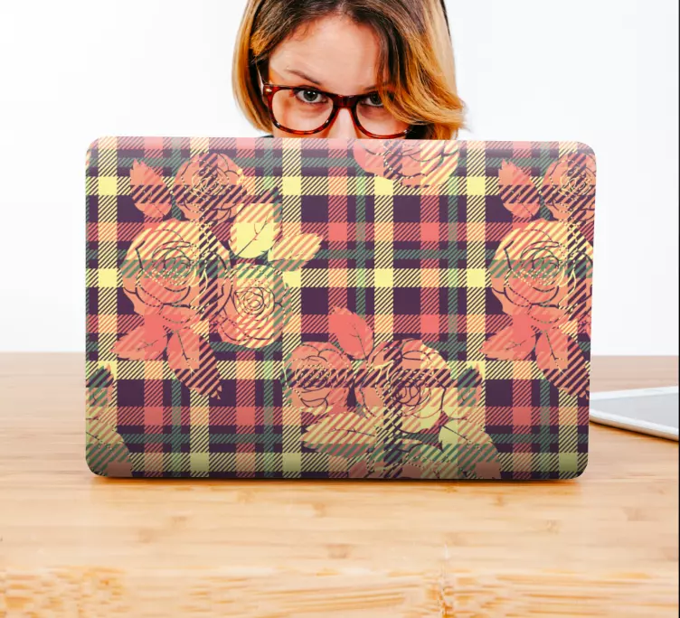 Transform your laptop with our stunning Laptop skin floral plaid overlay that beautifully merges a checkered tartan design with vibrant floral patterns. This delightful combination features colorful roses set against a rich plaid texture, creating an eye-catching accessory that reflects your unique style!