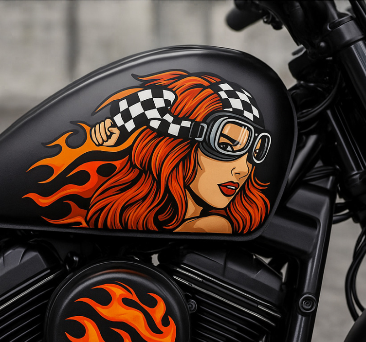 Reference: A54181The Motorcycle sticker vintage goggle maiden showcases a stunning design that captivates the spirit of adventure! With its retro aesthetic and vibrant colors, this sticker features a unique goggle maiden graphic that embodies a sense of freedom and nostalgia. Perfect for motorcycle enthusiasts and those who appreciate vintage art, this sticker brings personality to any space it adorns.