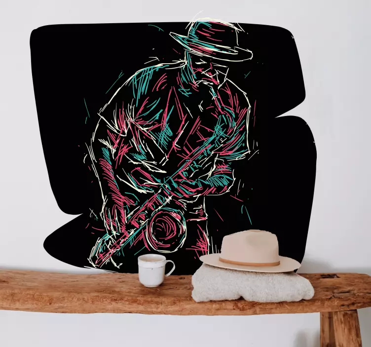 This Music wall sticker saxophonist in action music wall sticker is not just a decoration; it's an inspiration! Transform your living room, studio, or music space into a vibrant atmosphere where creativity flows. With its captivating design, this wall sticker will evoke feelings of joy and artistic expression, making your surroundings a celebration of music and life!