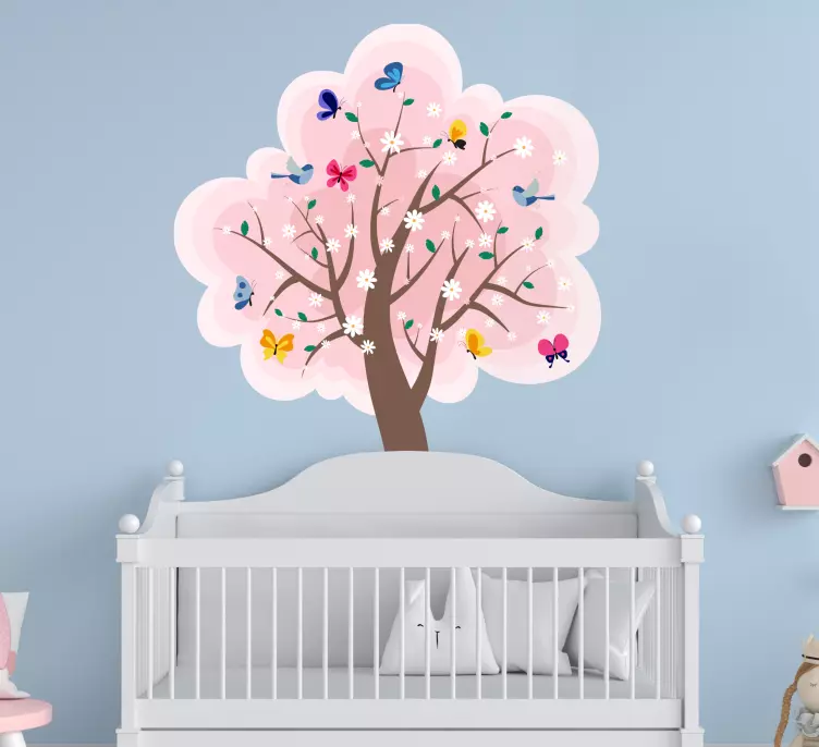 Transform your space with our stunning Nature wall sticker blooming tree scene. This vibrant design captures the essence of spring with its beautiful illustration of a tree adorned with colorful flowers and fluttering butterflies. The rich pinks and lively colors inspire a sense of nature's beauty, bringing warmth and joy into any room!