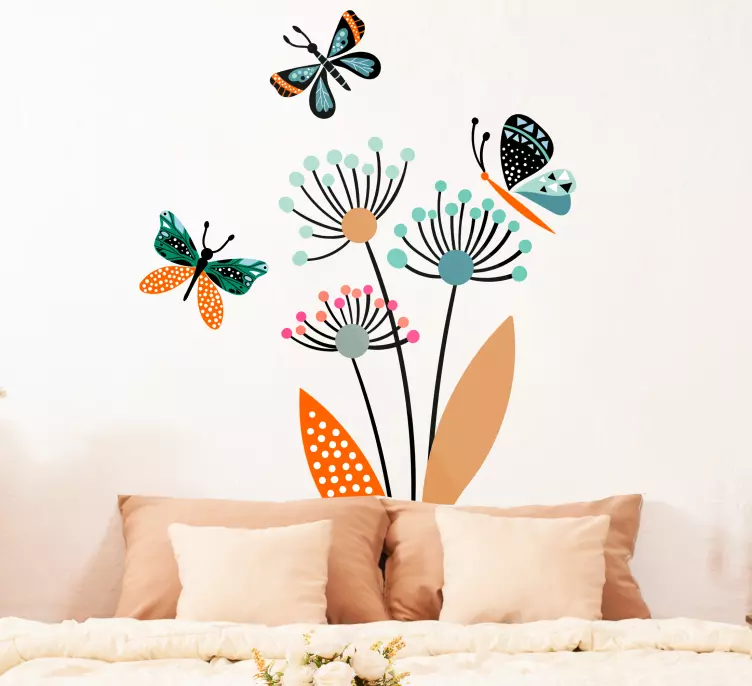 Nature wall sticker colorful floral butterflies