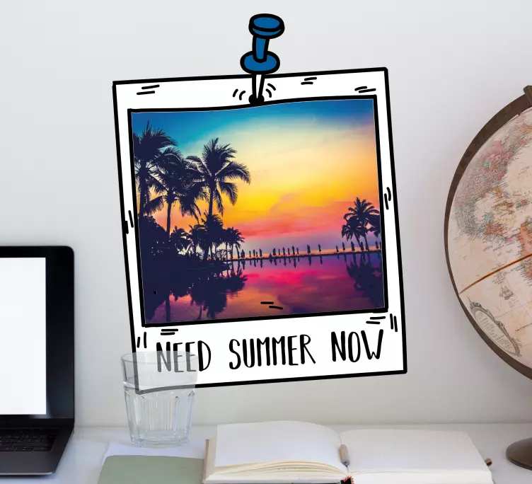 Transform your space with our stunning Nature wall sticker summer landscape frame, featuring a delightful graphic design that captures the essence of summer. Imagine a polaroid capturing a breathtaking beach sunset, framed by swaying palm trees that evoke the ultimate summer vibes. This enchanting photograph not only brightens up your walls but also brings a sense of warmth and joy to your home.