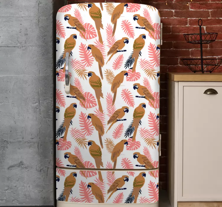 and make your kitchen unique in just a few easy steps! This design features a pattern withorange parrots
