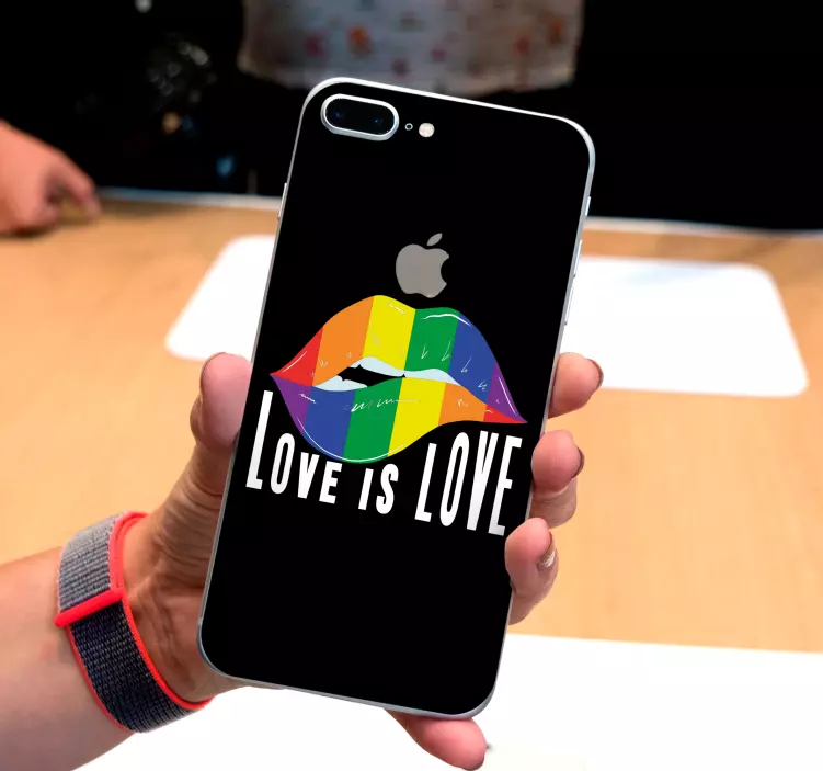 Immerse your phone in the captivating beauty of our self-adhesive decorative phone cover decal. Emblazoned with a stunning rainbow lip design and the empowering text 'Love is love', this decal is a powerful statement of inclusivity and pride.