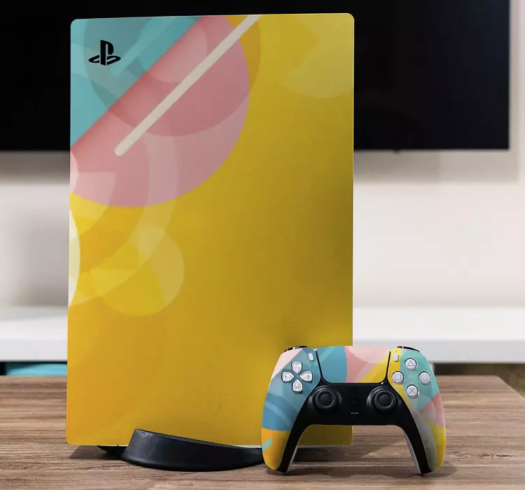 Transform your gaming experience with our Ps5 skin in vibrant color designs. This eye-catching sticker features an abstract and geometric graphic design that bursts with color, including striking yellow accents. With its unique aesthetics, your PlayStation 5 will stand out in any gaming setup, adding a splash of personality and flair!