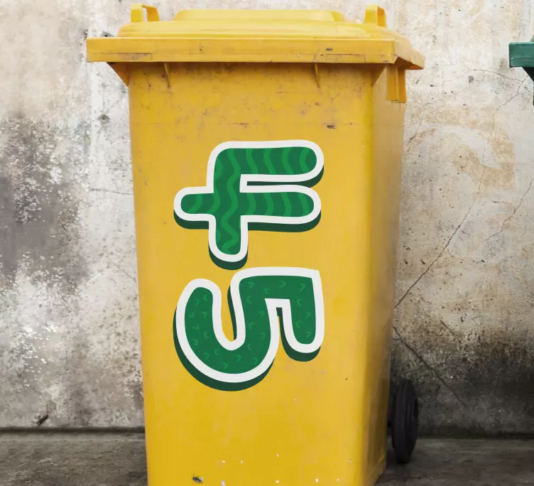 This Recycling decal for bin custom green letters features a vibrant and eye-catching design that includes customizable numbers and letters, allowing you to personalize your waste container. The striking green letters stand out beautifully, making it easy to identify recycling bins while adding a touch of creativity to your space!