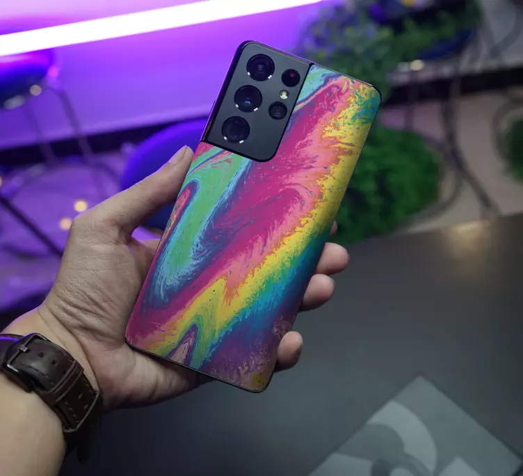 Our Samsung stickers colorful fluid swirl design Samsung stickers are the perfect choice for adding flair to your mobile phone! They not only enhance the look of your device but also provide protection against scratches and bumps. With their eye-catching design, these stickers will inspire creativity and make your phone a true reflection of your personality!