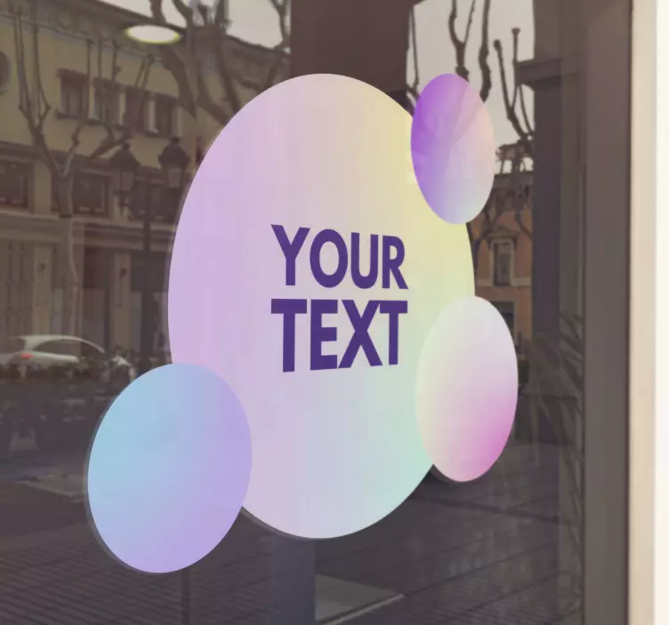 Introducing our vibrant Shop window sticker customizable text circles, designed to bring a splash of color and modern elegance to any space! The graphic design features a stunning gradient that flows seamlessly, creating an abstract and geometric aesthetic. With customizable text options, these shop window stickers bring a unique touch, allowing your message to shine in colorful circles that capture attention and reflect your brand's personality.