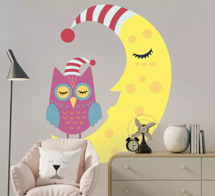 This lovely sticker is perfect for decorating your baby nursery, bedroom, or playroom. The cute owl is depicted sleeping on a moon wearing a Christmas hat, adding a touch of festive charm to any space.