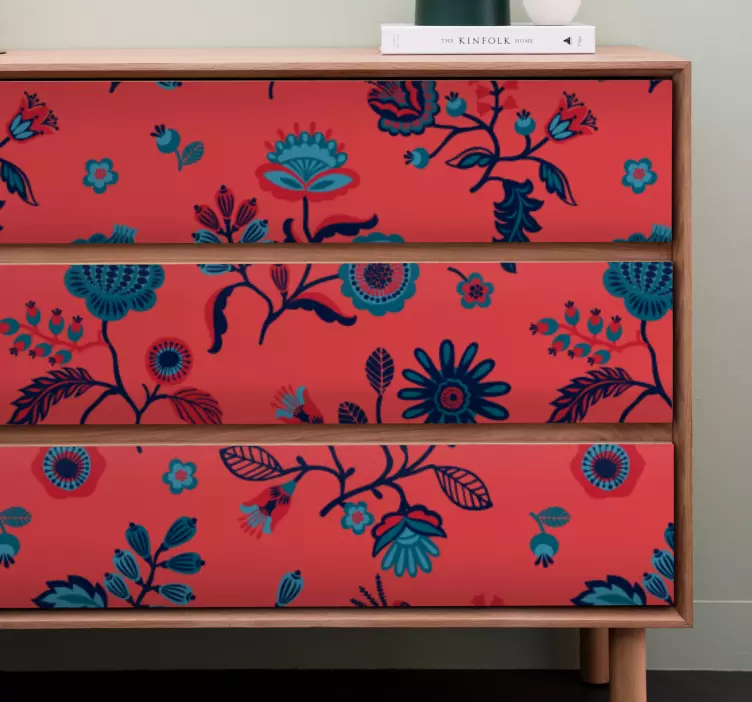 Transform your living space with our Vibrant floral concept furniture sticker, featuring a stunning design that beautifully intertwines colorful flowers and folk patterns. This eye-catching sticker showcases a rich tapestry of red and intricate floral motifs, making it the perfect accent for any drawer or furniture piece. The delightful combination of vibrant colors and artistic flair will bring a touch of nature indoors, enhancing your home decor with a joyful essence!