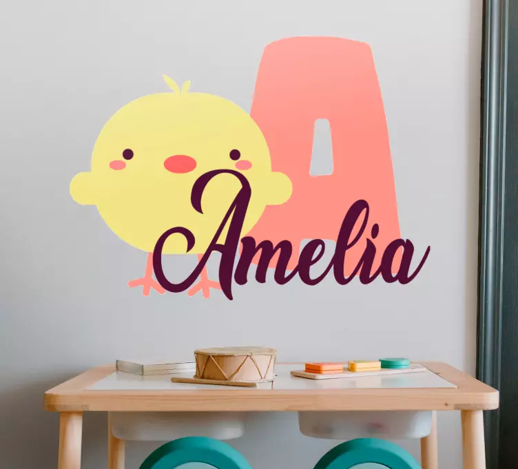 Transform your child's room into a whimsical sanctuary with our Wall stickers for kid cute chick design. This vibrant and playful design features a charming bird alongside customizable elements like an initial and a name, making it perfect for personalizing your little one's space. The cartoonish style brings a joyful atmosphere to any kids room, while the colorful and playful aesthetics enhance children's decor in a delightful way!