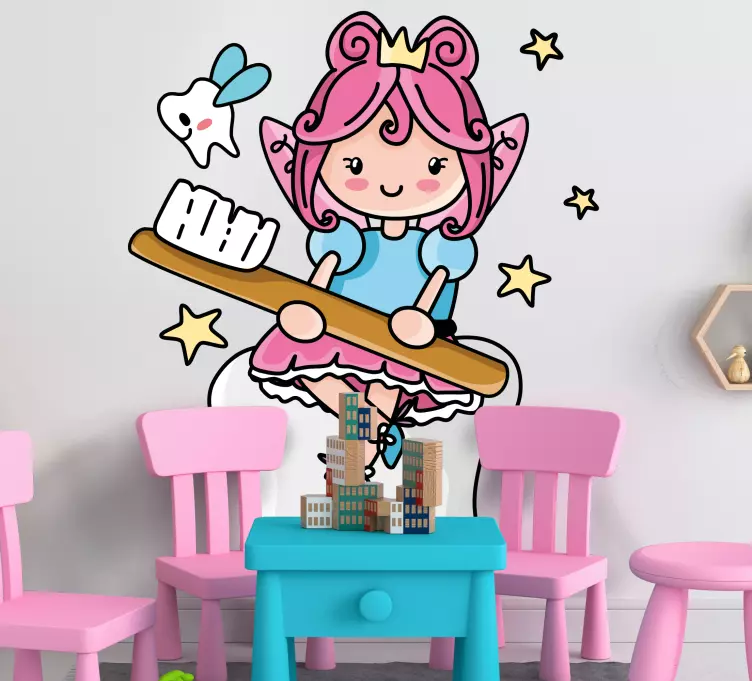 Transform your child's room into a whimsical haven with our Wall stickers for kid tooth fairy character. This enchanting design features a playful tooth fairy alongside a cute toothbrush, all wrapped in delightful shades of pink. The charming illustrations create a fantasy world that will ignite your child's imagination, making their space not just a room, but a magical adventure filled with smiles and joy!