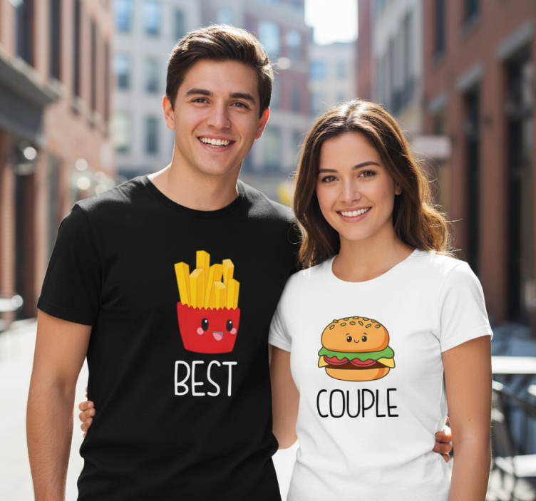 Reference: T5489Introducing our Best couple couple t-shirt, a delightful expression of love and unity! This charming design features an eye-catching graphic that combines vibrant colors with playful illustrations, making it perfect for couples who want to showcase their bond. Made from 85% cotton and 15% viscose, this couple t-shirt offers a soft and comfortable fit. With a classic round neck and short sleeves, it's a versatile addition to any couple’s wardrobe. Available in timeless black and white colors, this t-shirt is designed to bring smiles and joy!