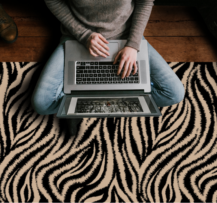 Transform your space with the captivating design of our Animal print vinyl rug with zebra stripes! Featuring a stunning zebra skin pattern that brings the essence of wildlife into your home, this animal print rug combines black and beige to create a bold statement piece. The unique aesthetics of this rug are sure to impress your guests and add a touch of excitement to any room!