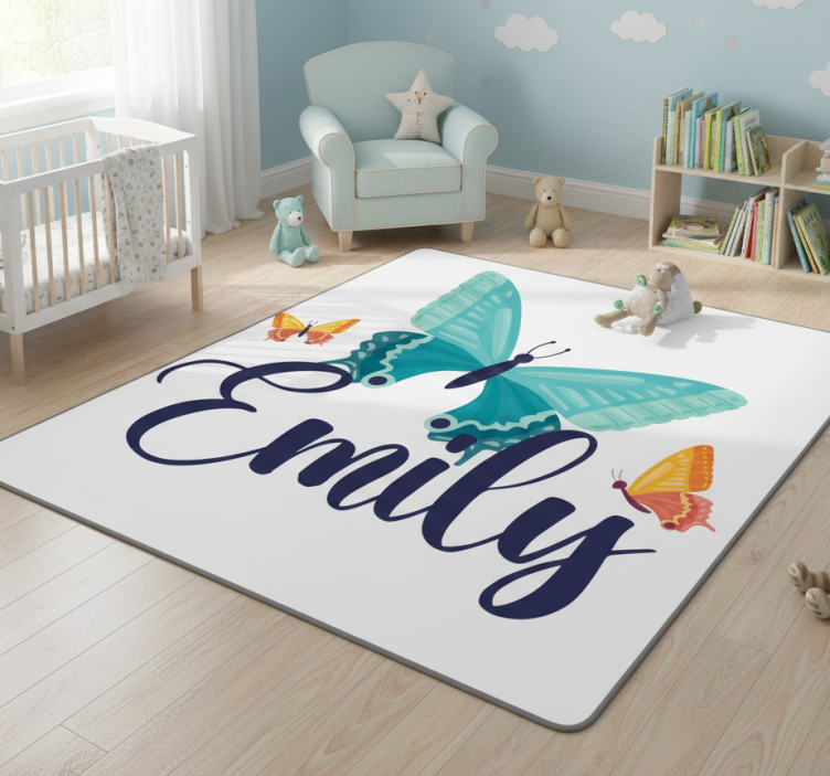 Animal vinyl rug bicolor butterflies with name
