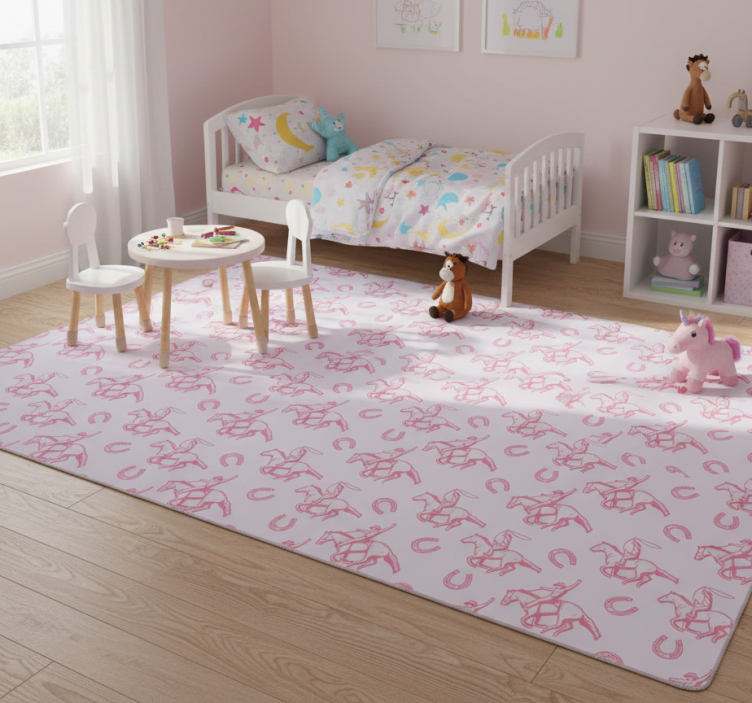Animal vinyl rug with pink cowboy horse pattern