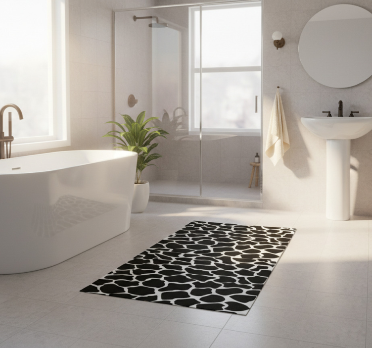 Reference: R21319Transform your bathroom into a stylish oasis with our stunning Giraffe print bathroom vinyl rug! This eye-catching design features a beautiful giraffe pattern that adds a touch of the wild to your space while providing comfort underfoot. Made with high-quality materials, it is easy to clean and boasts anti-slip properties, making it a practical yet chic addition to your decor.