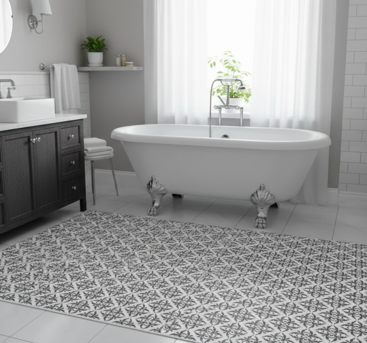 Elevate your bathroom aesthetic with the Bathroom vinyl rug in black tile pattern bathroom vinyl rug. Its elegant design effortlessly complements a variety of styles, making it a versatile addition to your decor. Imagine stepping out of the shower onto a sleek rug that not only looks fantastic but also protects your floors and provides comfort underfoot. This rug is more than just a practical item; it’s a statement piece that will inspire your entire bathroom makeover!