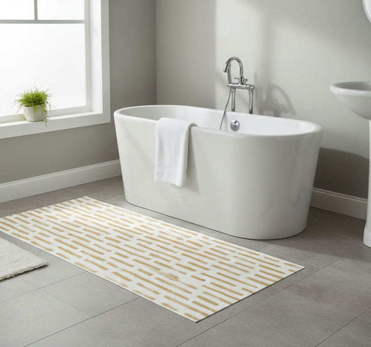 The Bathroom vinyl rug in light brown brush strokes bathroom vinyl rug is not just a practical item; it's a statement piece that elevates your decor. Its charming design seamlessly blends with various color schemes and styles, enhancing the overall ambiance of your bathroom. Imagine stepping onto a beautifully designed rug that complements your style and brings joy every time you enter the room! This rug is ideal for anyone looking to create a cozy and inviting atmosphere.
