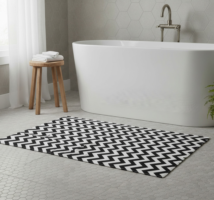 The Bathroom vinyl rug with triangle lines bathroom vinyl rug is an inspiring choice for anyone looking to elevate their bathroom decor. Its modern design not only enhances the aesthetic of your space but also adds a layer of comfort underfoot. This rug effortlessly combines style and practicality, making your bathroom a more inviting and enjoyable place to unwind.