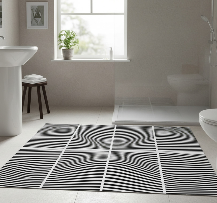 Bathroom vinyl rug waves in squares