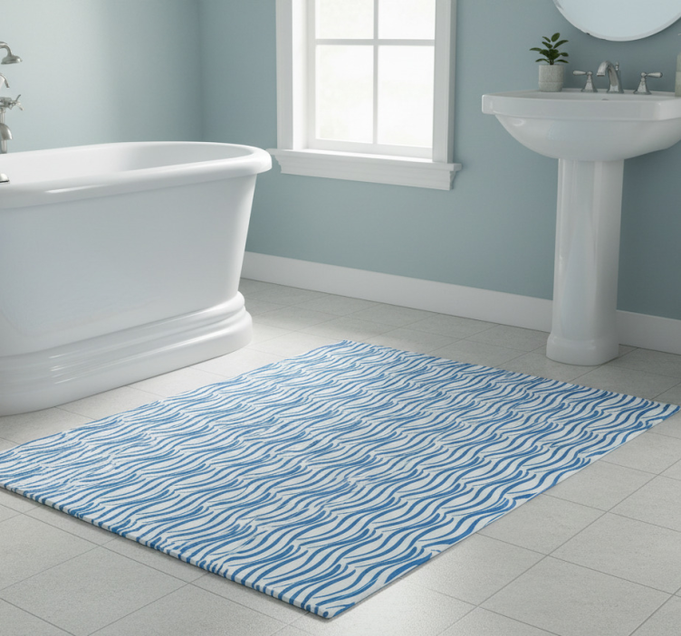 The Bathroom vinyl rug with small waves design bathroom vinyl rug is perfect for adding a touch of elegance to your bathroom decor. Its soothing wave motif not only enhances the aesthetic appeal but also creates a welcoming atmosphere. Let this charming rug serve as a focal point in your bathroom, inspiring relaxation and tranquility every day!