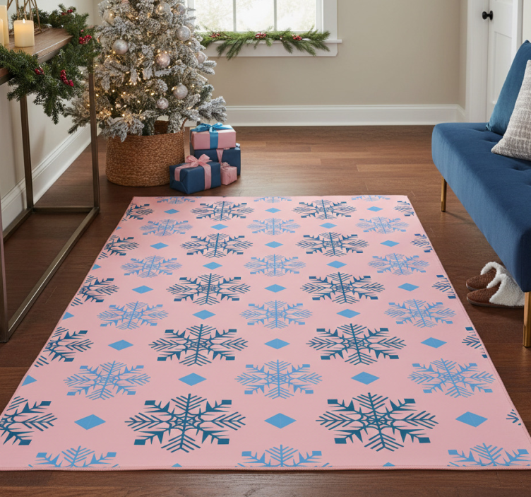Christmas vinyl rug in pink and blue snowflakes