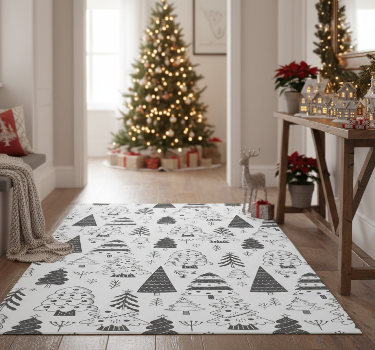 The Christmas vinyl rug with christmas tree design Christmas vinyl rug is an enchanting way to bring holiday cheer into your home! This rug not only adds a touch of whimsy and joy to your decor but also serves to unite your festive themes throughout your living space. With its eye-catching design, it becomes a focal point that inspires warmth and togetherness during the holiday season.