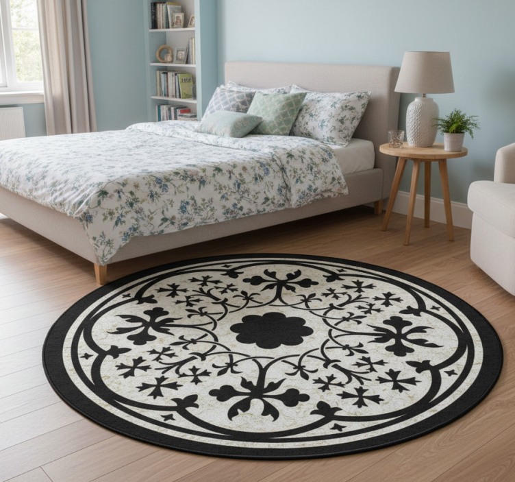 The Floral vinyl rug gothic rosette design floral vinyl rug is the perfect addition to any decor style, effortlessly enhancing the aesthetic of your home. Its striking design invites admiration, making it an inspiring focal point for livings rooms and bedrooms alike. Not only does it elevate your interior, but it also provides a warm and welcoming atmosphere that invites guests to linger.