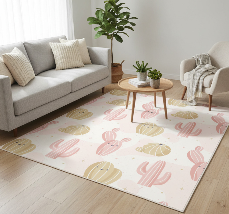 Floral vinyl rug with adorable cactus design