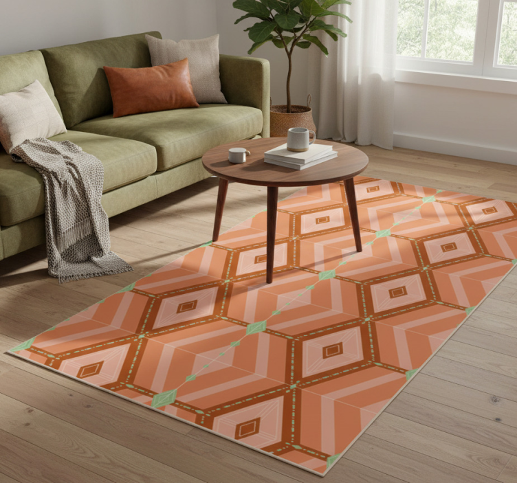 The Geometric vinyl rug in 30s autumnal hues geometric vinyl rug is an exquisite choice for anyone looking to enhance their home décor! Its eye-catching design not only serves as a beautiful focal point but also brings warmth and character to your living space. Whether placed in the living room, bedroom, or dining area, this rug will elevate your interior design and invite compliments from guests!