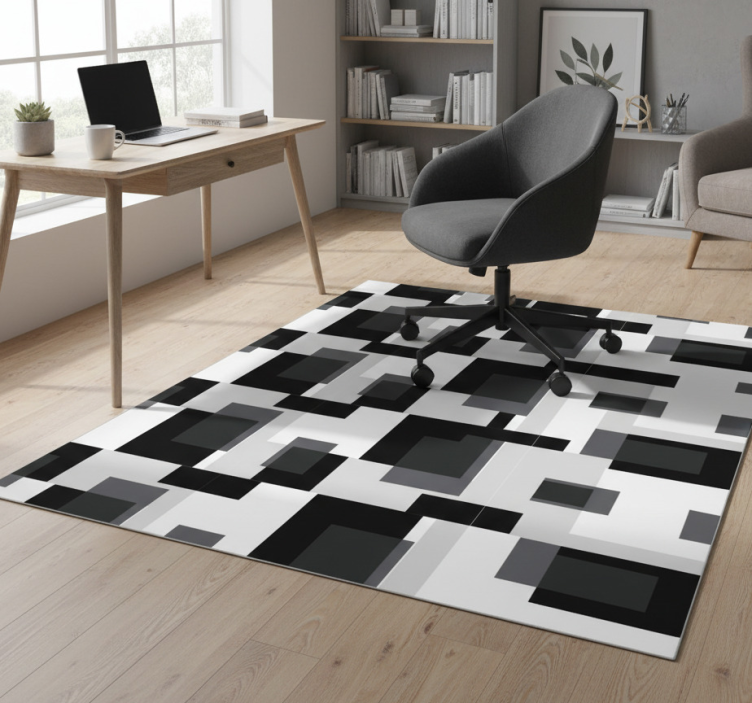 The Geometric vinyl rug in black and white blocks geometric vinyl rug is a fantastic choice for those looking to add a touch of modern elegance to their space! Its unique geometric pattern serves as a stunning focal point, bringing life and personality to your decor. Imagine stepping onto a stylish rug that complements your furniture and creates a harmonious atmosphere. This rug is not just an accessory; it's a statement piece that invites creativity and inspiration into your home!