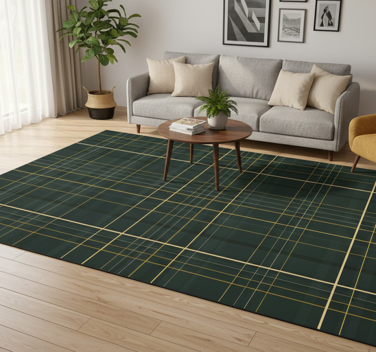 Reference: R21573Transform your space with our stunning Geometric vinyl rug in dark green scottish pattern, a piece that beautifully blends modern design with a timeless aesthetic. The intricate Scottish pattern, combined with deep green hues, creates a striking visual that will elevate any room. Easy to clean and anti-slip, this rug not only enhances your decor but also protects your floors while offering thermal isolation and scratch resistance!
