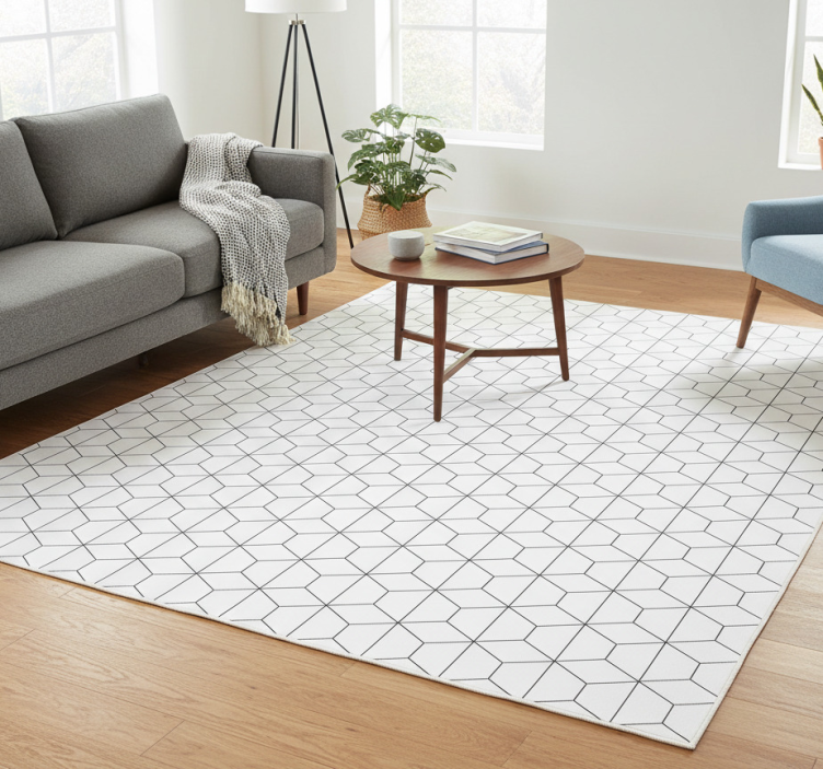 The Geometric vinyl rug with geometrical cubes design geometric vinyl rug is an ideal choice for those looking to elevate their home decor. Its striking design adds a touch of elegance and modernity, making any room feel more inviting and stylish. By incorporating this rug into your space, you can create a focal point that draws the eye and sparks conversations, all while providing comfort and warmth underfoot!