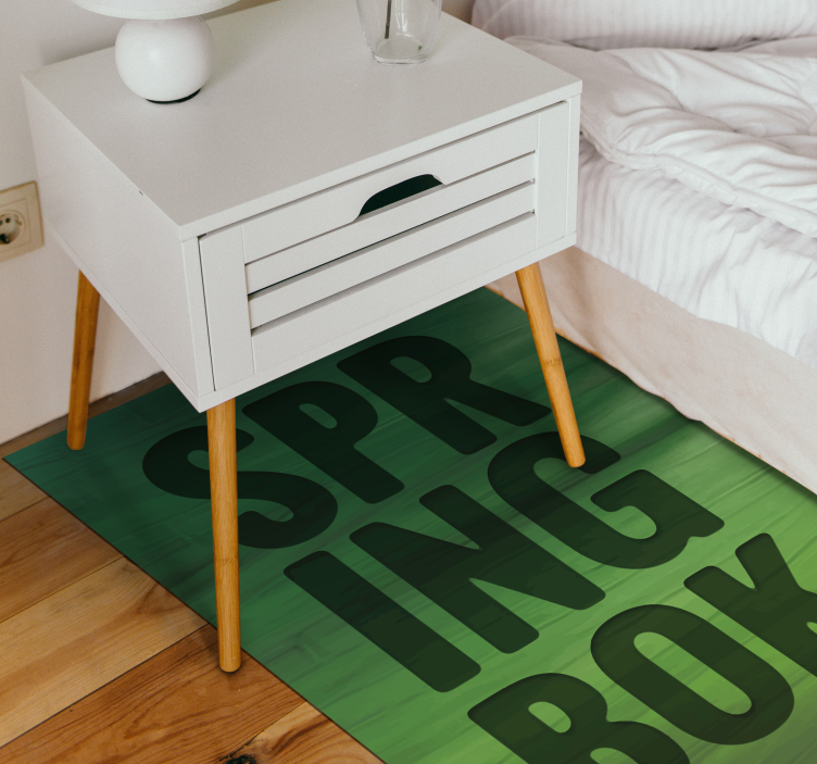 Introducing our Springbok custom text vinyl rug, now available in a beautiful green color. Perfect for adding a touch of elegance to your bedroom space, this rug is also versatile enough to be placed in any room of your home.