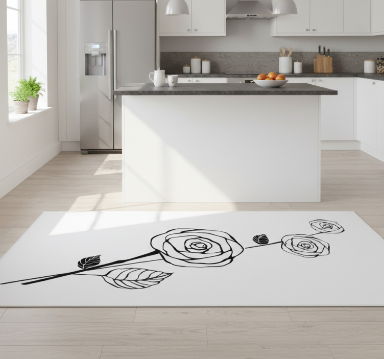 The Kitchen vinyl rug black and white roses design kitchen vinyl rug is perfect for those seeking to elevate their home decor. This unique piece not only enhances the aesthetic appeal of your kitchen but also creates a warm and inviting atmosphere. Imagine hosting friends and family while showcasing this captivating design that brings life to any room!