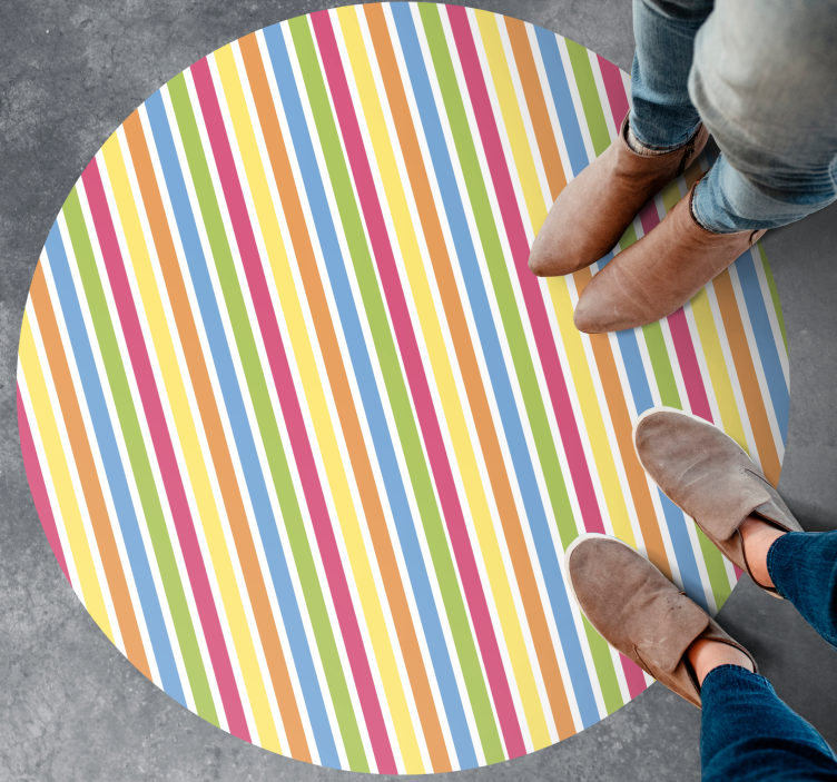Introducing the Lively striped style striped vinyl rug, a stunning addition to your home that features a captivating design of vibrant and colorful stripes and lines. This round rug showcases a delightful pattern that instantly brightens up any space, making it a perfect choice for those who love to add a splash of joy to their decor!