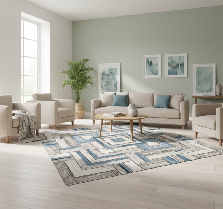 Living room vinyl rug rustic wood planks