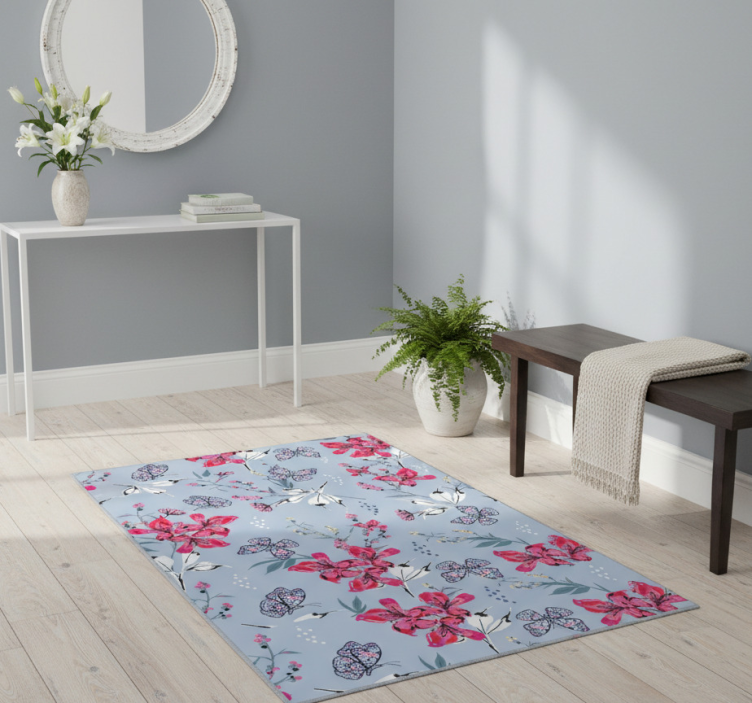 Nature vinyl rug floral butterflies design